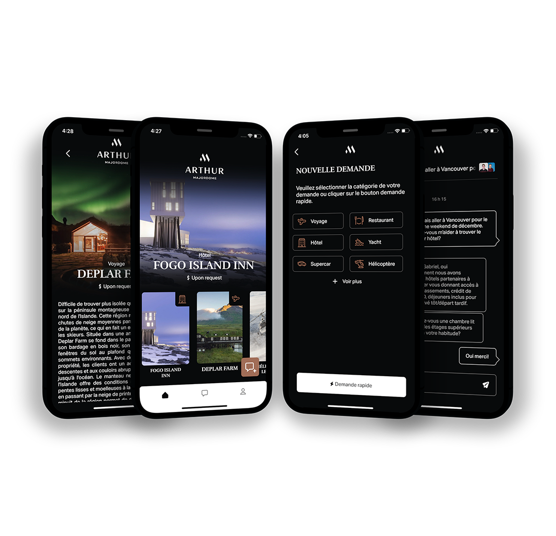The new mobile application allows you to send your reservation requests directly to one of our concierges and to have immediate assistance. In addition to seeing recent events, activities, luxury transportation, new restaurants and experiences available in Montreal, this application allows you to see the most grandiose partner hotels and villas internationally in preparation for your next trip. Suggestions are also offered to you according to your preferences and tastes. This service is available every day from 9 a.m. to 8 p.m. Do not delay and download the mobile application: (App Store / Google Play)